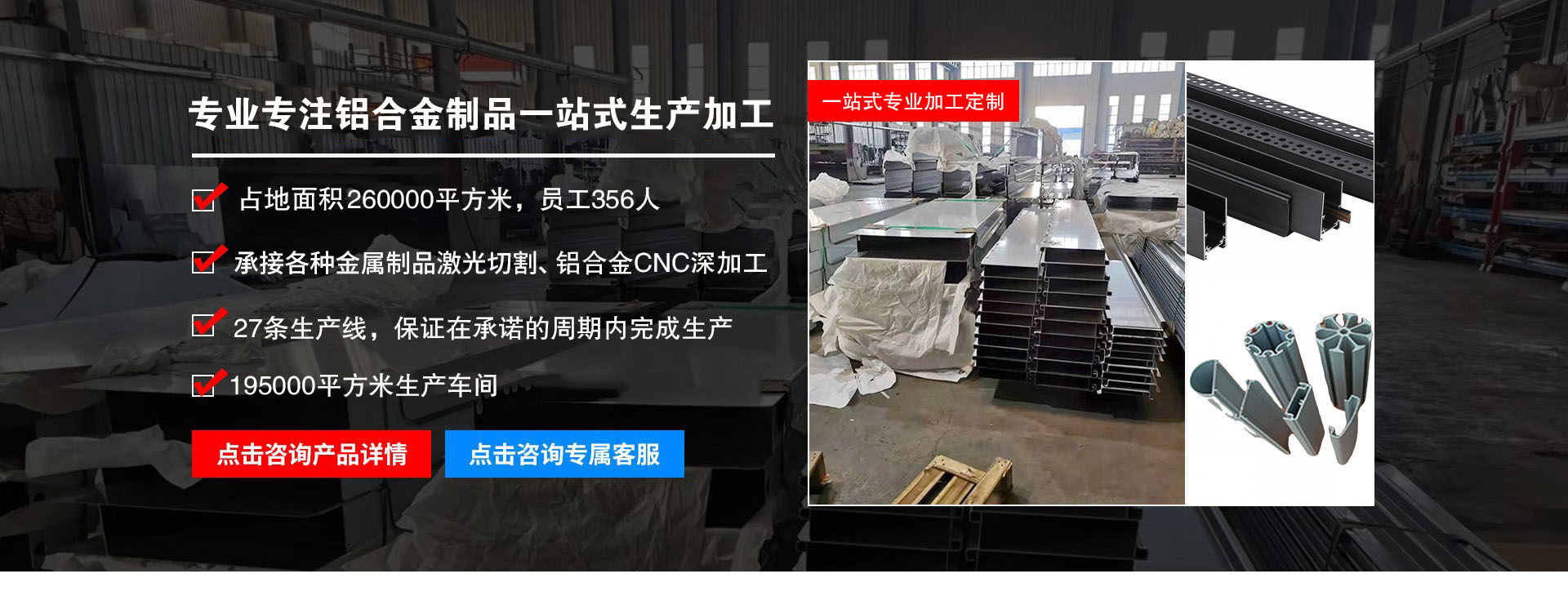 現擁有當今先進鋁加工生產設備配套齊全,其中: 擠壓車間機臺:4000 噸機 3000 噸機各 1 臺,1000 噸 機 1200 噸機 800 噸機各 2 臺,600 噸機 7 臺。模具生 產 2 個車間,熔鑄生產線 5 條爐,氧化生產線. 電泳生 產線.噴涂生產線及CNC深加工加工車間。意聯(lián)金屬制品有限公司不但擁 有先進的設備和科學的技術,而且擁有一批優(yōu)秀的企業(yè)精英,我們不斷創(chuàng)新,不懈追求更完美的產品,依靠先進的設備和科學的現代化管理,我司的產品暢銷全國各地和出口美國.加拿大.澳大利亞. 中國香港地區(qū). 中國澳門地區(qū)等國家和地區(qū)。